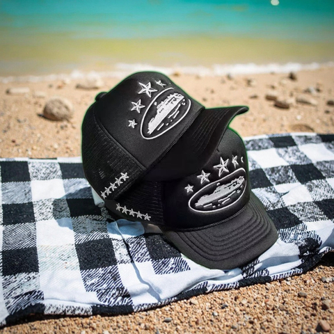 Vente en gros de chapeaux de camionneur couleur noire Snapback chapeaux de broderie personnalisée chapeaux à dos en maille